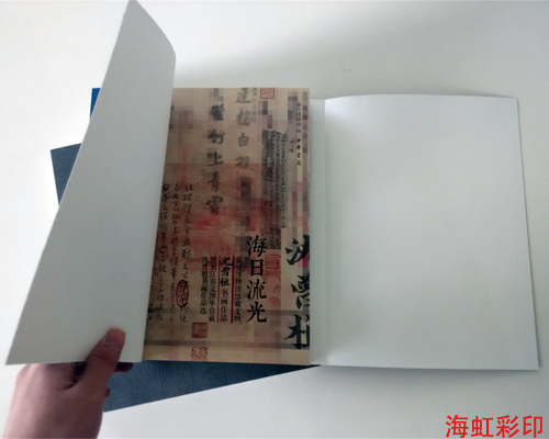 這本書畫冊印刷品的名稱叫《海日流光》 本來封面上還有壓凹、印金等工藝,不過上次已經給客戶確認過 這次是封面換紙 所以封面沒再做工藝。