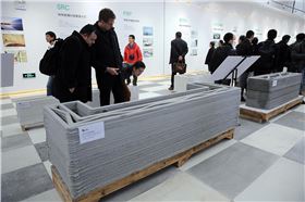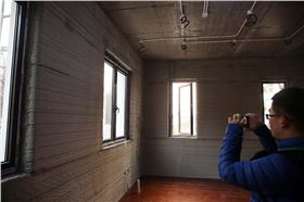 就在昨天1月18日,兩名行人從3D打印制成的別墅旁經(jīng)過。數(shù)幢使用3D打印技術(shù)建造的建筑亮相蘇州工業(yè)園區(qū)。這批建筑包括一棟面積1100平米的別墅和一棟6層居民樓。這些建筑的墻體由大型3D打印機層層疊加噴繪而成,而打印使用的“油墨”則由建筑垃圾制成。