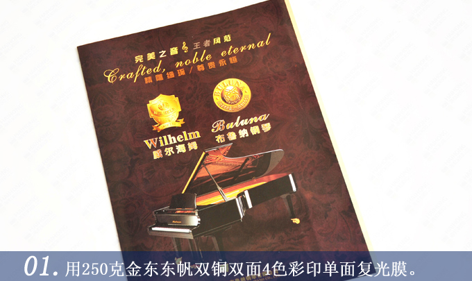 - 封面用350克寧波雙銅正面光膠,燙亮銀。內(nèi)頁用300克雙銅紙雙面4色彩印,黑色鐵絲圈裝。
