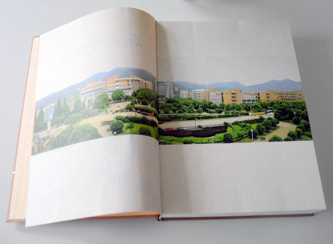麗水學(xué)院志(2004-2014)學(xué)校精裝書(精裝畫冊)印刷420*285 平背硬殼精裝   封面燙亞銀,有壓凹感。過亞油。 串線,貼白色堵頭布。封面128g 標(biāo)規(guī)大麥色本草纖維特種裱3mm荷蘭箱板,環(huán)襯155g古樸紋蛋殼黃特種,內(nèi)頁105g鑫源宣清紙?zhí)胤N共536p